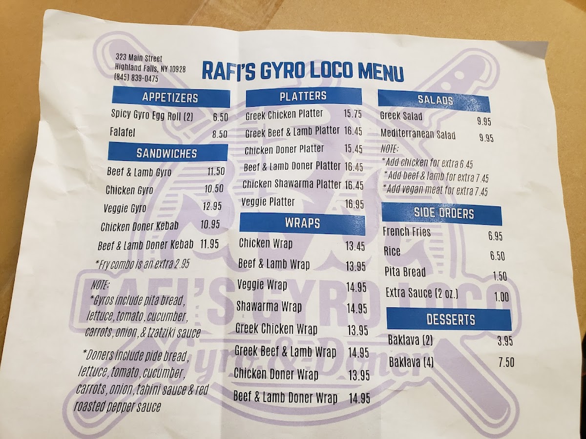 Welcome to Rafi's Gyro Loco, a culinary gem nestled in Highland Falls, NY! This cozy eatery boasts an array of mouthwatering dishes that pay homage to traditional Mediterranean fare. Their menu is impressively diverse, featuring platters like the Chipotle Chicken and the Beef and Lamb Greek Platter, each artfully prepared to tantalize your taste buds.